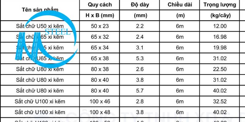 Bảng báo giá thép hình U đầy đủ kích thước mới nhất