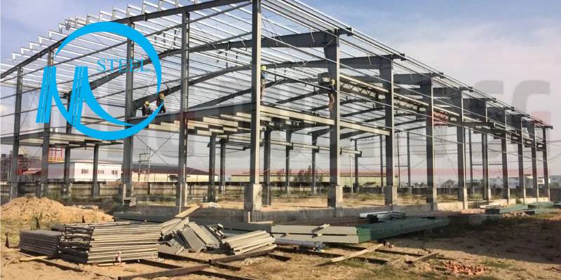 Thép hình là vật liệu lý tưởng cho các hệ thống giàn mái có khẩu độ lớn như nhà thi đấu, sân bay, trung tâm thương mại, giúp tạo không gian rộng mà không cần cột chống.