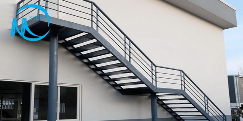 Trong chế tạo cầu thang, thép hình V được sử dụng làm xà gồ chính và tay vịn. Khả năng chịu lực cao giúp cầu thang có thể chịu được tải trọng lớn từ người và thiết bị di chuyển. Đồng thời, bề mặt nghiêng của thép hình V tạo độ bám tốt, giảm nguy cơ trượt ngã.